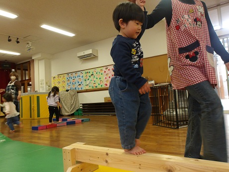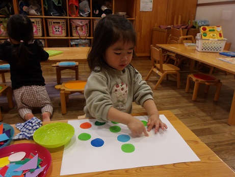 お天気に恵まれる日が多く、園庭でボールを転がしたり、蹴りながら追いかけて走るなど、のびのびと遊ぶことができました。ホールでは、傾斜マットの上を走り抜けたり、ジャンプをしたり、慎重な足取りで平均台を渡るなど、様々な動きを楽しむことができました。さて、1年を通して様々な素材を使い、製作を行ってきましたが、最後はのりを使い、思い出帳の表紙を作りました。「どれにしようかな」と、迷いながら、好きな色や形の折り紙を選び、素敵な作品に仕上げていましたよ。