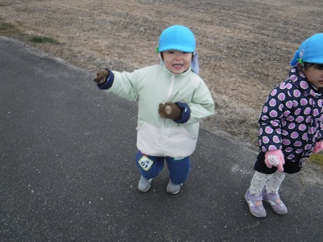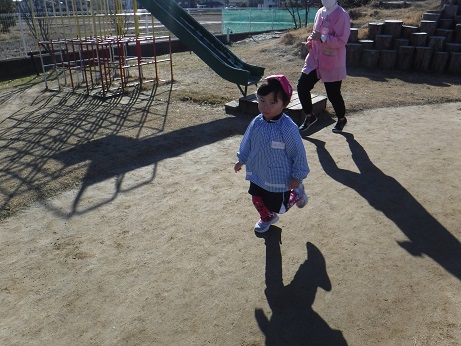 園外マラソンが始まり、子どもたちは体を温めようと沢山身体を動かそうと遊びが活発になってきています!毎日のジョギングは、自分の記録を超えようと「何周走ったか数えて!」と目標を持ち取り組んでいます!れんげさんも、年上の子の姿を見て「頑張るぞ!」と声を掛け合い、走り切ることが出来るととても嬉しそうにしています!走った後は「あつい~」と身体が温まったことに気付き、寒い時には園庭を走っている姿を多く見かけるようになりました!