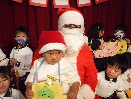 2025/12/26 クリスマス会🎄❄楽しみが沢山の12月!クリスマス会は待ち遠しく感じているようで、当日もいつサンタさんが来るかワクワクしながら過ごしていました!ホールでクリスマス会をすると「リンリンリン」と鈴の音が聞こえ、保育園にもサンタさんがきてくれました!子どもたちは、大喜びでサンタさんに質問したり写真を撮ったりなど楽しい時間を過ごすことが出来ました。お部屋に帰るとクリスマスプレゼントが置いてあり、喜ぶ姿が沢山見られました。