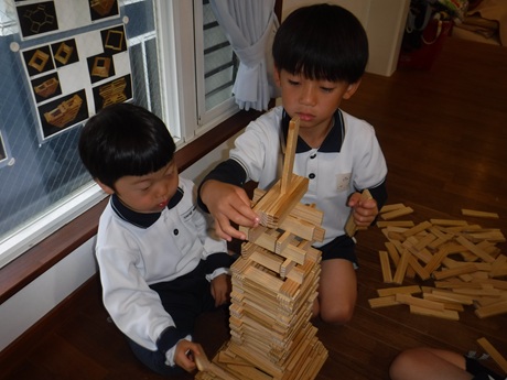 2026/04/13 新しい友だちと一緒に楽しく遊んでいます! new4月から1つ大きくなり、新しい友だちと一緒に保育園で過ごし始めました。新入園児のお友だちも慣れない生活で、分からないことばかりですが子どもたち同士助け合い、少しずつ関わり楽しく遊んでいます!すみれさんは「カプラ」を様々な形に変えて積み上げたり、段差がある壁に敷き詰めたりして部屋を可愛く飾っています。その姿を見てれんげさんやちゅうりっぷさんもカプラに興味をもち、積み上げて楽しむ様子が見られます!ひまわりさんは、初めて使う玩具に戸惑いながらも遊び方を知っていき、「こう?」と手先を器用に使い楽しんでいます。2026/03/24 お別れ会すみれさんと過ごすのも残り少なくなりました。楽しい遊びを教えてくれたり、掃除の仕方お当番の仕方を教えてくれたすみれさんに、みんなからありがとうの気持ちを込めて素敵なプレゼント作って渡しました!作っている際、「○○ちゃん大好きだからハート書いてあげたい」「○○くんのLaQ凄かった」など、沢山の思い出を思い出しながら丁寧に作っている姿が見られました。お別れ会では、すみれさん一人ひとりにインタビューをしたり、「爆弾ゲーム」をしたりして楽しみました。給食の「お楽しみメニュー」を見た瞬間、「わー!ポテトだ!」「カレーがいつもと違う!」と大興奮の給食になりました。最後まで保育園生活楽しみましょう!