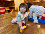 また、お部屋では積み木を積めるようになってきた子が増え、お友だちや保育者と一緒に高く積み上げ拍手をし、「できた」を味わう経験ができました。