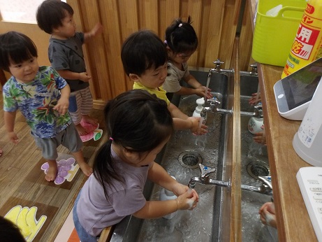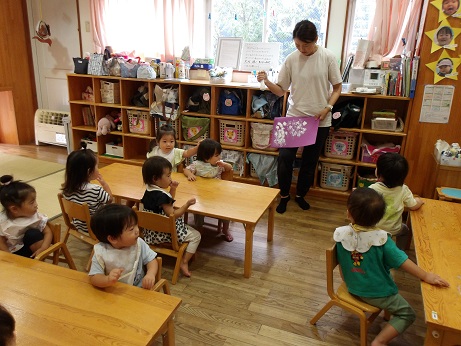 9月も引き続き水遊びを楽しみながら、気候のいい日は散歩に出掛けて季節を感じられるようにしていきたいと思います。