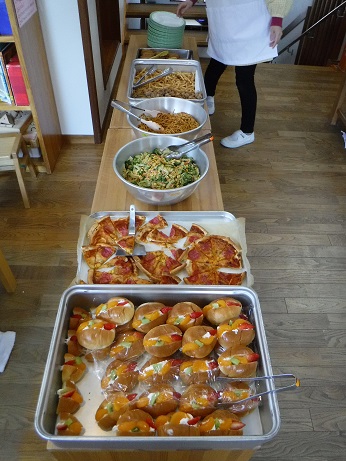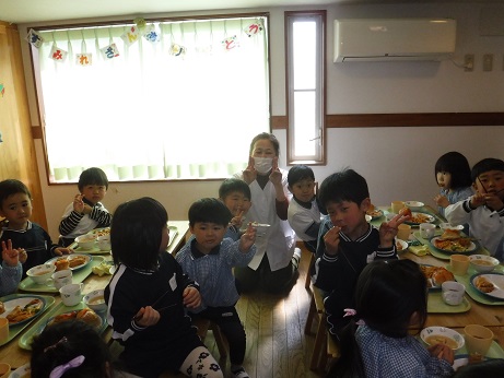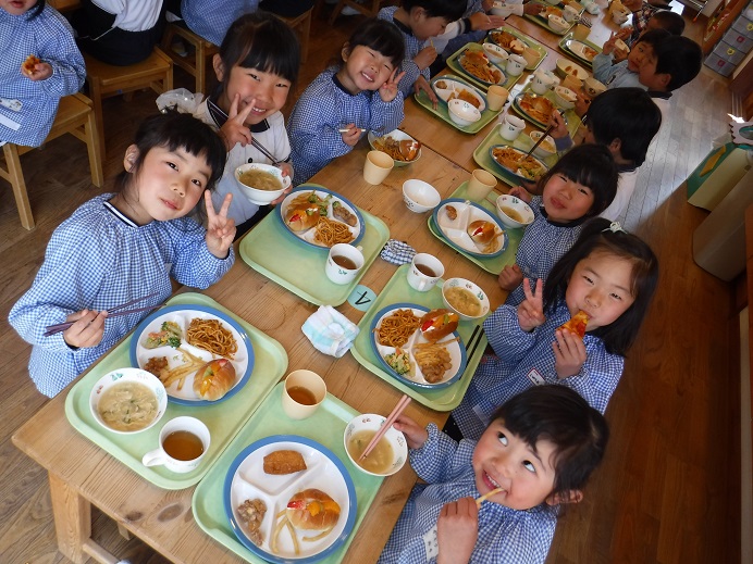 1.キュウリ 2.南瓜 3.すいか さあどの葉っぱか当ててみてくださいね。答えは子どもたちに聞いてみてください。赤ちゃんクラスはぜひお山の向こうの畑を見に来てください。2019/03/20 お別れ会 バイキング給食好きなものを好きなだけ食べられるバイキング給食。
