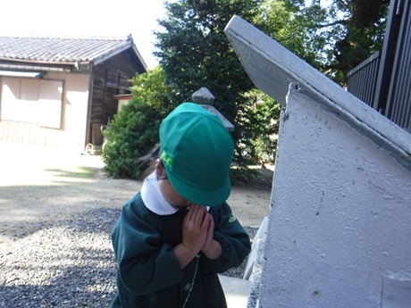 2025/11/14 七五三詣りに行きました! new神社まで歩き、七五三詣りをしてきました!すみれさんは月刊誌で七五三の意味を知り、病気をせずに大きくなったこと神様が守ってくれたことに感謝することを理解し、年下の子に教えてあげる姿が見られました。ちゅうりっぷさんも神社には神様がいるところと理解しているようで鳥居の前でお辞儀をして挨拶することが出来ました。れんげさんやひまわりさんは年上の子がお参りする姿をみて、手を合わせて七五三詣りに参加することが出来ました。