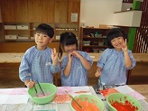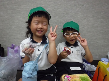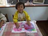 2025/09/19 すみれぐみのみんなでお泊り保育に出掛けました!すみれ会議や荷物の点検を保育教諭や友だちと一緒に行うことで、「もうすぐお泊り保育だね、楽しみだね、緊張する、ママに会えないのは寂しいな、、、」など、様々な声が聞こえてきました。当日、期待と不安を抱えながら、バスに乗りましたが、バスレクリエーションを楽しむうちに笑顔が溢れ、「次は何するの?」と目を輝かせて楽しんでいましたよ。たくさん遊んだ夜は、眠れるか心配する保育教諭を置いて、友だちと一緒にあっという間に眠っていきました。プールや遊園地でたくさん遊び、協力をして過ごした1日は、子ども達の素敵な思い出になったかな。2025/08/22 ミックスジュース作り🍎🍇ミックスジュースの歌や手遊びをすると何度も「もう1回!」と繰り返すほど大好きな様子が見られました!ひまわりさんと絵の具でミックスジュースを作ると、それに興味を持ちフィンガーペイントという技法でミックスジュース作りが始まりました。手で絵の具を混ぜる時には、何の果物を入れるか想像しながら楽しみ「まぜまぜ~」と言っていたりお歌を歌ったりと絵の具の感触を味わっていました!色の変化に気付き「むらさきだ!」と次々に変化していくので大興奮!色への関心が深まりました☆