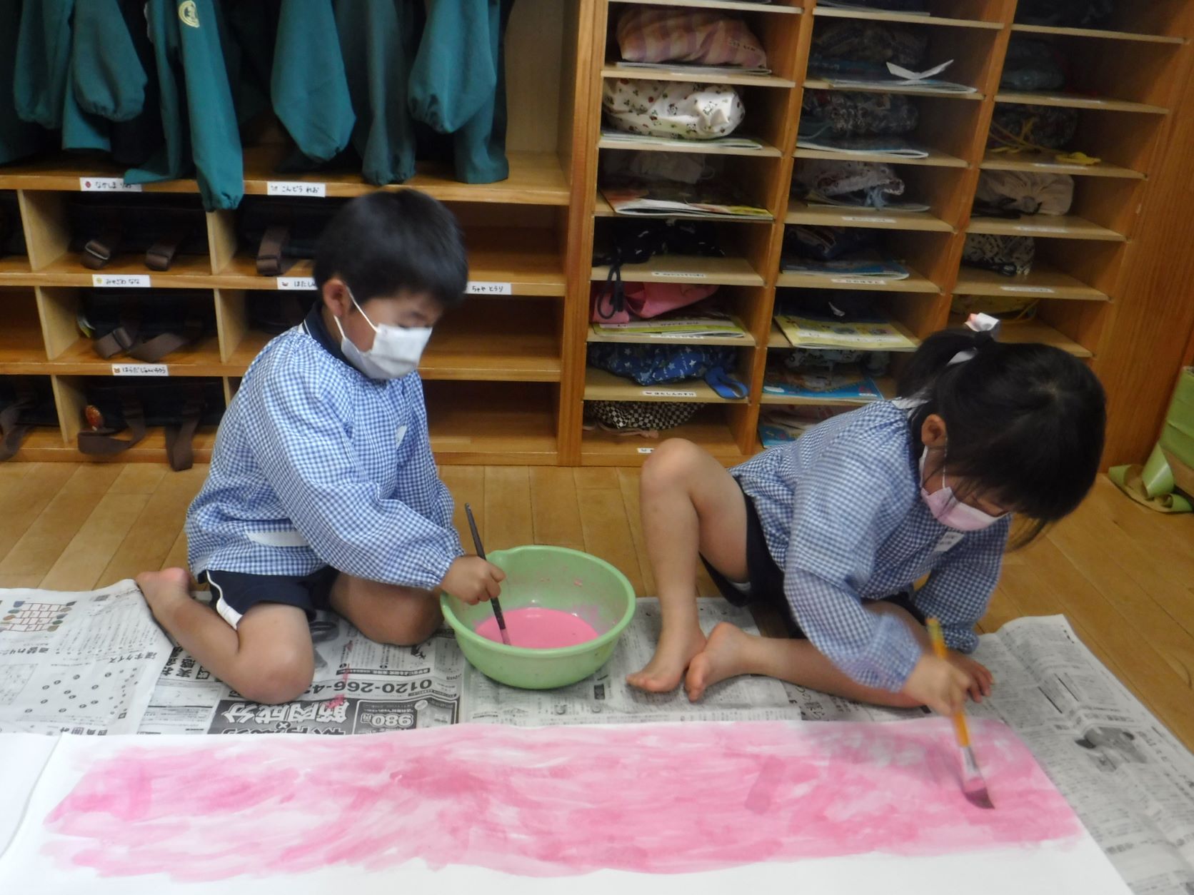 すみれさんはみんなで話し合い、大きいこいのぼりを作ることを決め、大きなB紙に絵の具で色を塗りました!2022/04/18 新年度始まりました!森の家に、新しいお友だちが来ました!