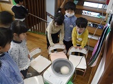 2022/01/25 もちつき会をしたよ☆すみれさんとちゅうりっぷさんは、きねを持ってお餅つきを体験しました!一人ずつついて交代し、みんなでその様子を見て完成を楽しみにしていましたよ♪お部屋でも、餅つき機を使ってお餅を作りました♪機械で動くお餅に興味津々、お餅の匂いがしてくるとお腹を空かせていました!