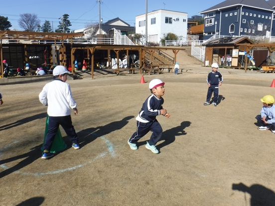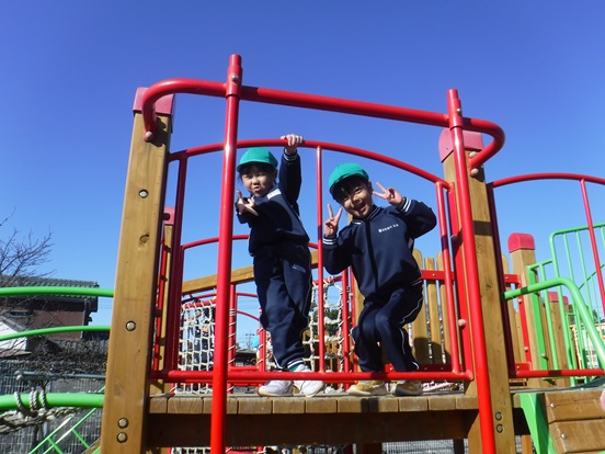 お部屋では、カルタやすごろく、けん玉などの正月遊びを楽しんでいます。また、戸外では寒さにも負けず遊具や鬼ごっこをして元気いっぱい遊んでいますよ!